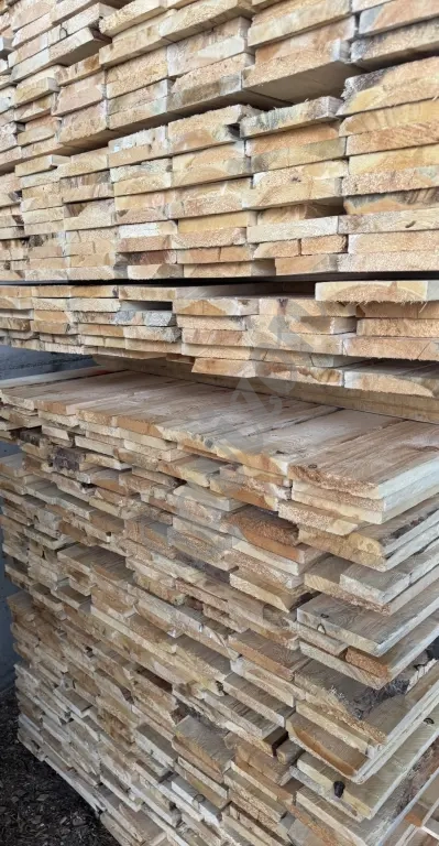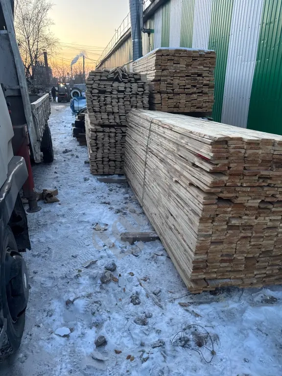 Доска обрезная, сухая, отбраковка, местами присутствует обзол. Дисковое пиление, Камерная сушка.