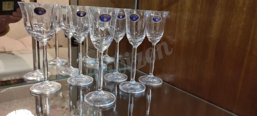 Сразу дам советы на проверку неподелки богемского хрусталя: фужеры идеально прозрачные и чистые, без вкраплений. Преломление света солнечного или от освещения создаёт «радугу». И наконец, не менее 4 секунд будет длиться характерный хрустальный звон - волшебная песня хрусталя. расчёт наличными торг уместен