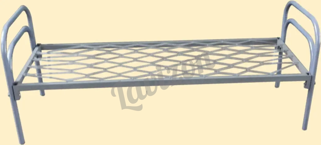 - одноярусные и двухъярусные металлические кровати; - кровати металлические с деревянными спинками; - металлические кровати с сеткой из прокатной пружины; - металлические кровати со сварной сеткой; - армейские кровати для военных казарм.
